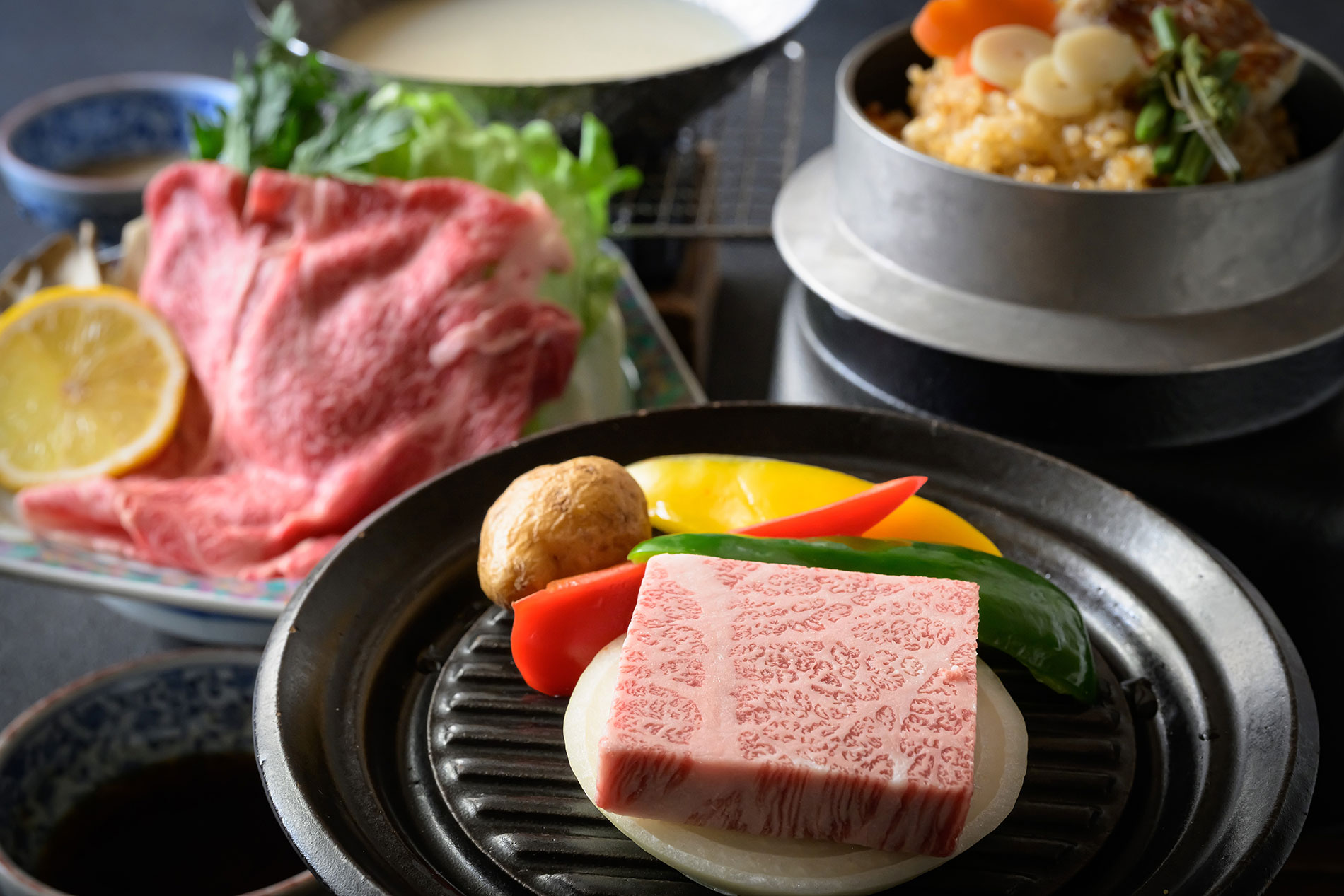 福井自慢の鮮魚五種盛りをはじめ、和牛や季節の釜飯などの当館の人気料理が揃ったコースです。