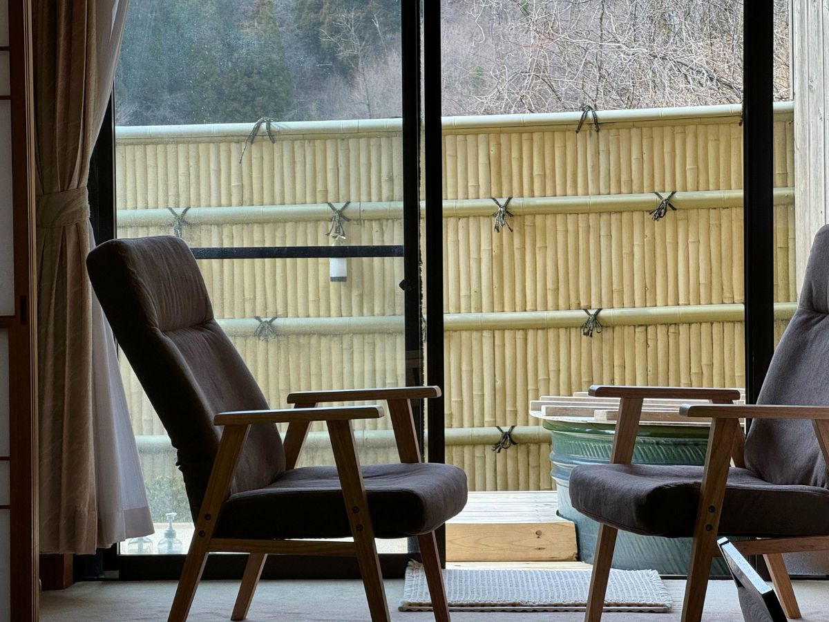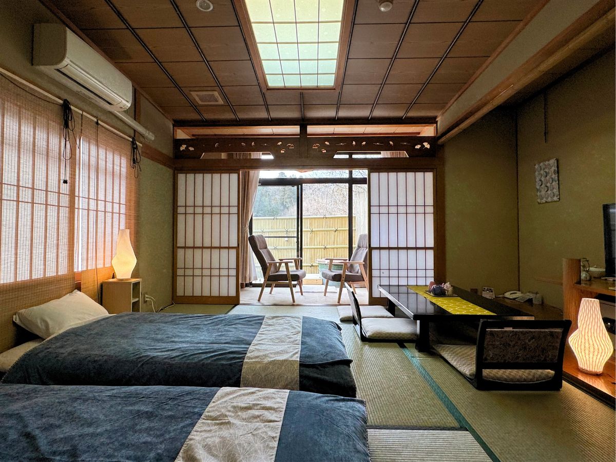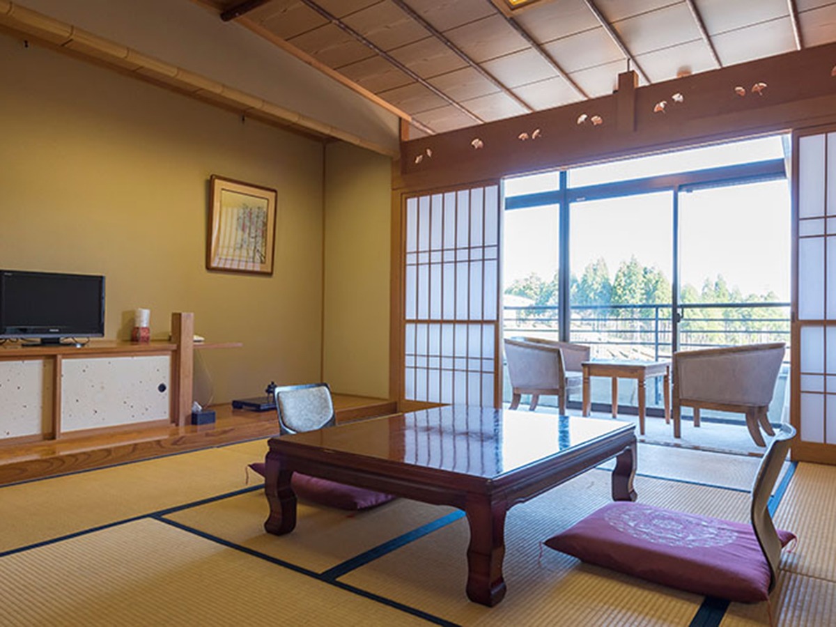 懐かしさも感じる、純和風の客室。窓を開けると、心地よい森林の空気が入り込んでくる。街の喧騒から離れて、小鳥のさえずりに目を覚まし虫たちの歌声に季節を感じる。
