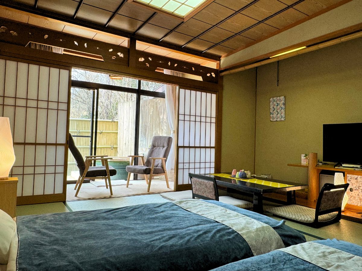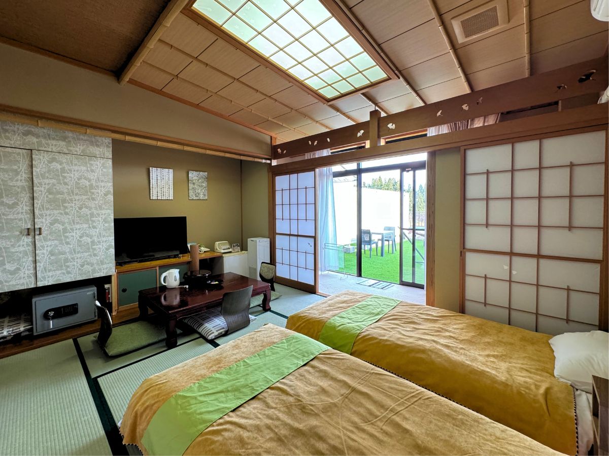 2024年春~和ベッド客室リニューアル!プライベート感のあるテラスと畳敷きにベッドを備えた快適なお部屋でお寛ぎください。